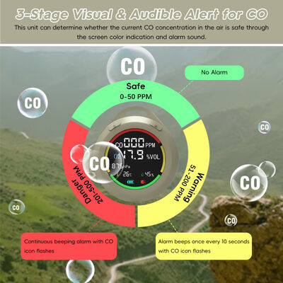 [6-in-1 ve taşınabilir tasarım] RV karbon monoksit dedektörü CO, O2, atmosfer basıncı, yükseklik, sıcaklık, nem gerçek zamanlı olarak algılar.Cebine kolayca yerleştirilebilir.Ayrıca, 7.8 inçlik bir ipliğe sahip, asılabilir ve ayakta durulabilir.