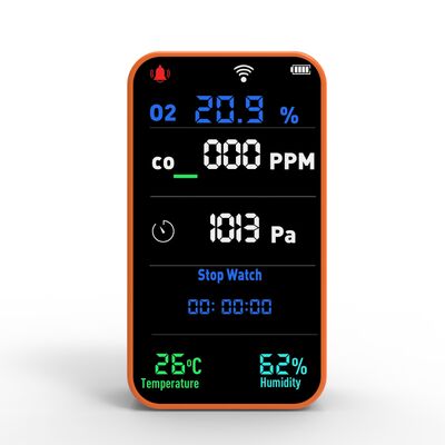 Taşınabilir 7'si 1 Arada WiFi Gaz Dedektörü O2 CO Monitörü Sıcaklık Nem Basınç, 181g Hafif 0